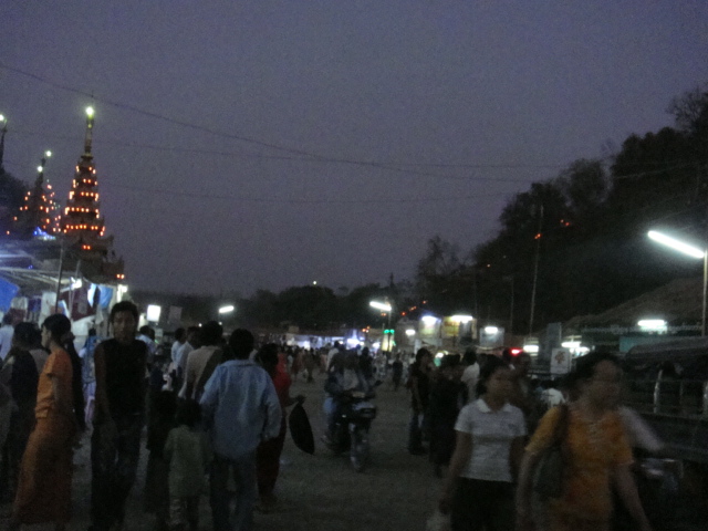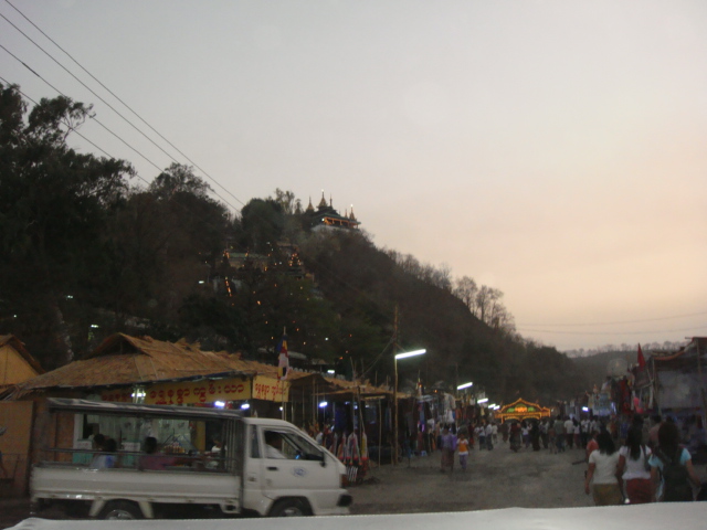 ေရႊစက္ေတာ္နယ္ေျမကုိ ၀င္လုိက္သည္ႏွင့္ ပြဲေစ်းတန္းမ်ား လွ်ပ္စစ္မီးတထိန္တုိ႔ျဖင့္ ေတာက္ပေနသည္။ ဘုရား ဖူးလာ အနယ္အရပ္ရပ္မွ လူထုမ်ားကလည္း ၾကက္ပ်ံမက် စည္ကားလွသည္။ လွည္တတန္၊ ကားတတန္၊ ဆုိင္ ကယ္ အျမန္တုိ႔ျဖင့္ လာၾကသည့္ ဘုရားဖူးမ်ား၏ မ်က္ႏွာတြင္လည္း ေရႊစက္ေတာ္၏ ေအးျမသည့္ ေတာရိပ္ ေတာင္ရိပ္ မန္းေခ်ာင္းစမ္းေရတုိ႔၏ အေငြ႔အသက္မ်ားေၾကာင့္ ေပ်ာ္ရႊင္ လန္းဆန္းေနၾကသည္။
